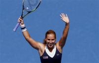 | AO: Cibulková dala súperke kanára a je v semifinále! | Slovenská tenistka Dominika Cibulková (na fotografii) zvíťazila vo štvrťfinále Australian Open nad jedenástou nasadenou Simonou Halepovou z Rumunska 6:3, 6:0 a druhýkrát v kariére postúpila do grandslamového semifinále. V ňom si zmeria sily s poľskou tenistkou Agnieszkou Radwanskou.